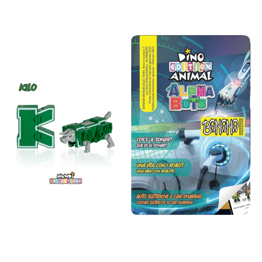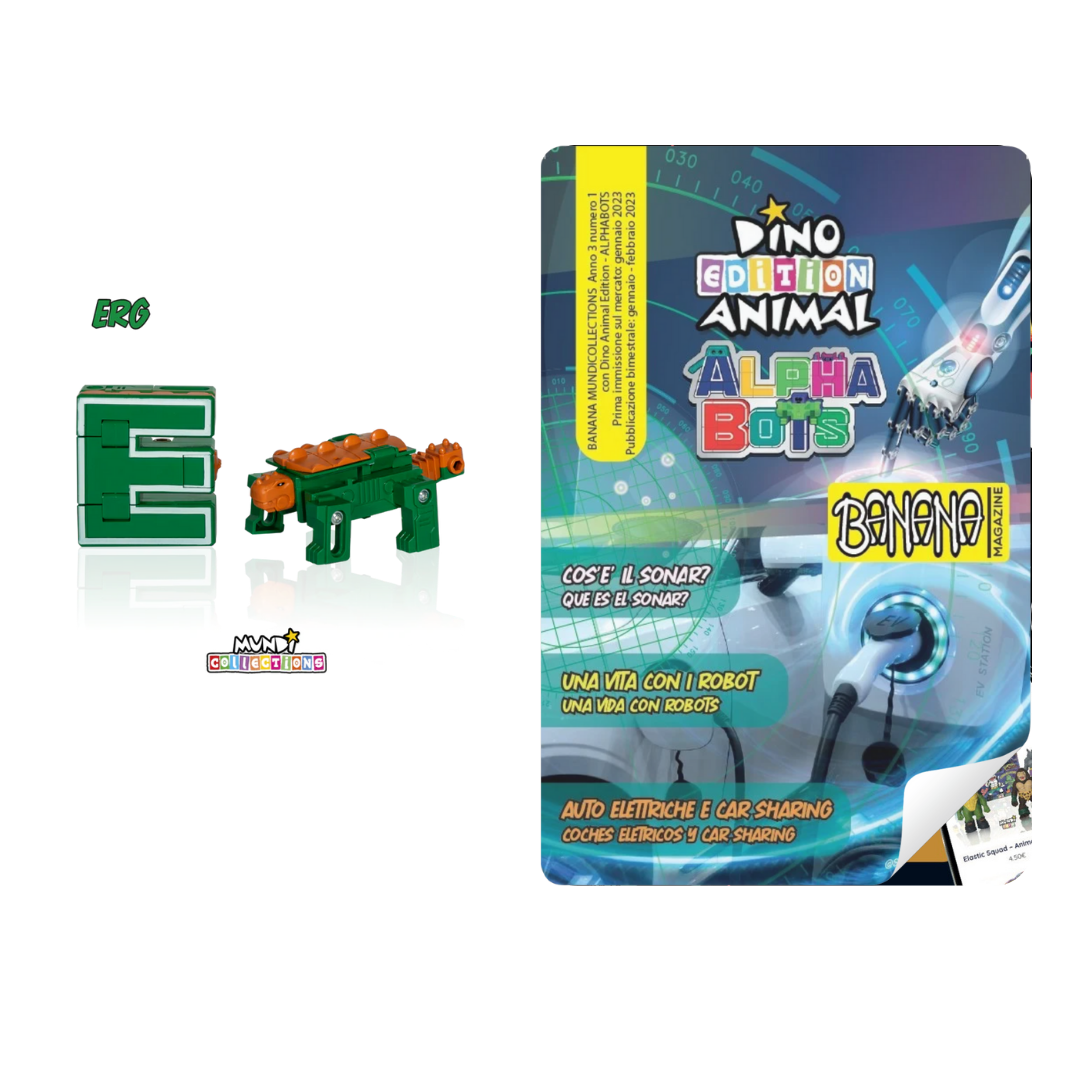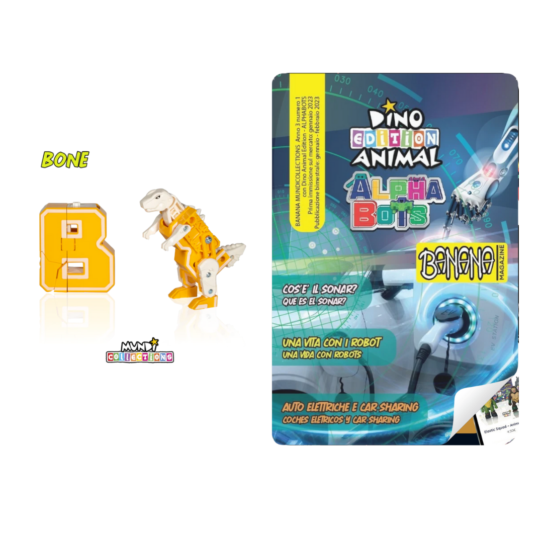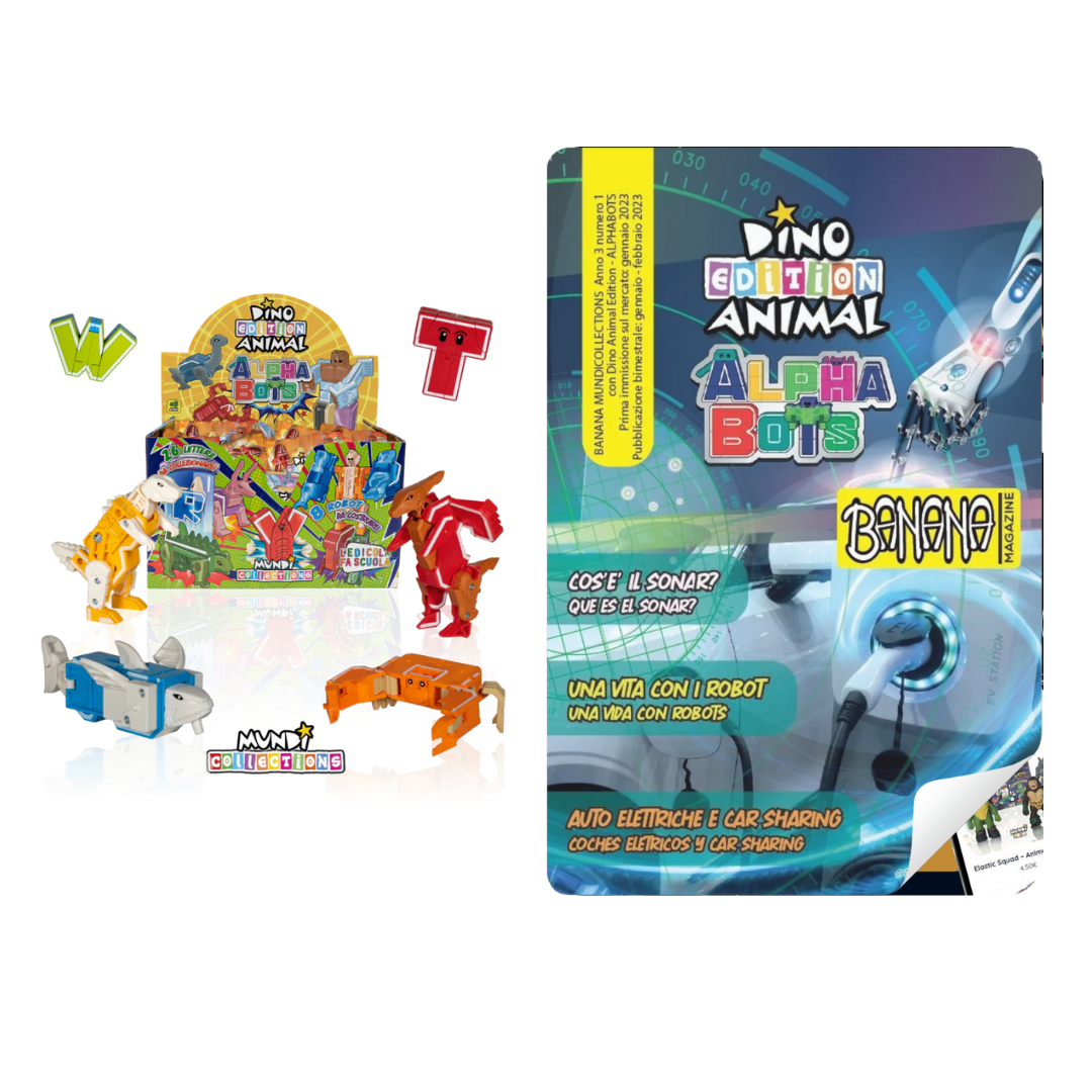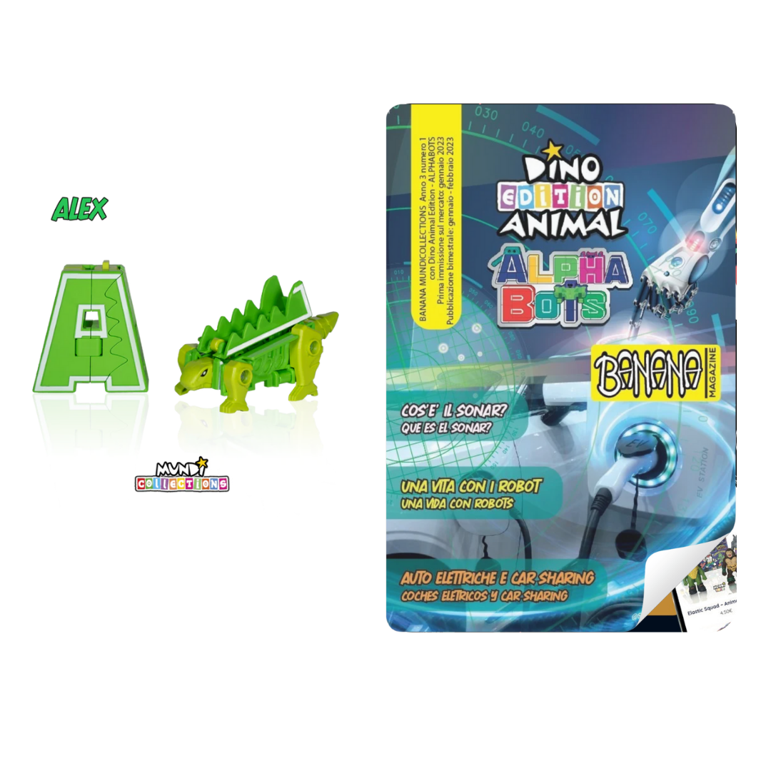 Discover the amazing Dino Animal Alphabots collection! This innovative line of magazine with collectable transforms the 26 letters of the alphabet into impressive animals and dinosaurs. Each letter becomes a unique figure, perfect for kids to learn and play at the same time. Ideal for ages 3 and up, these magazines and collectable combine fun, education, and creativity.
