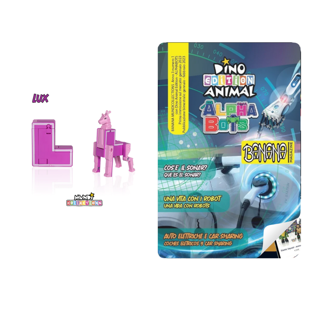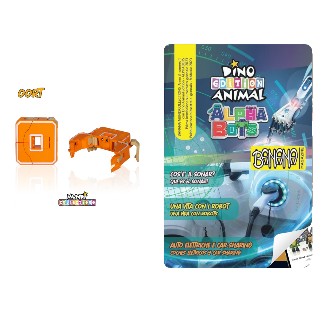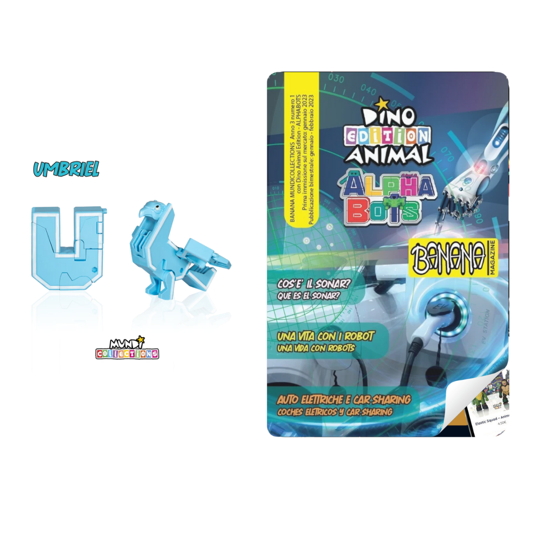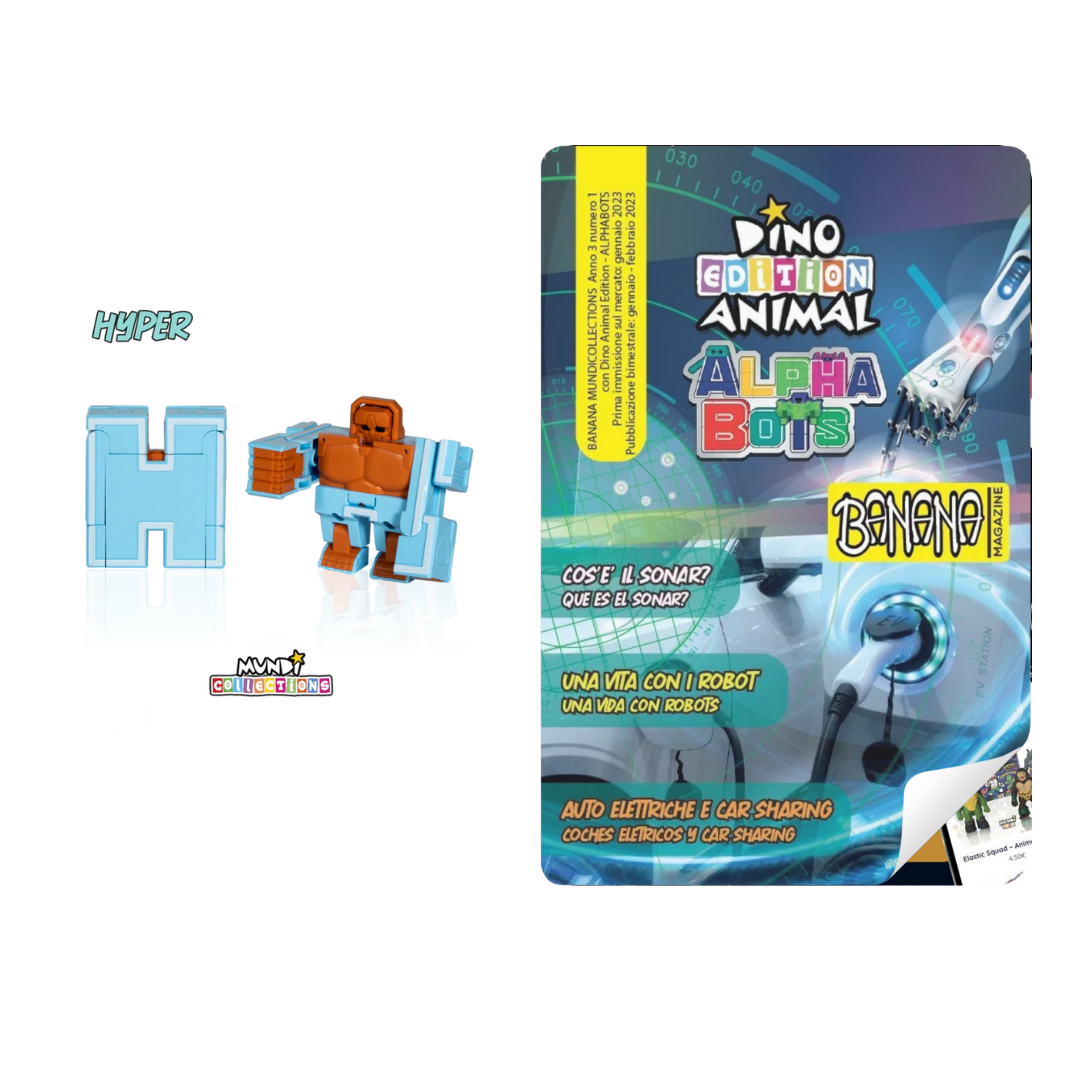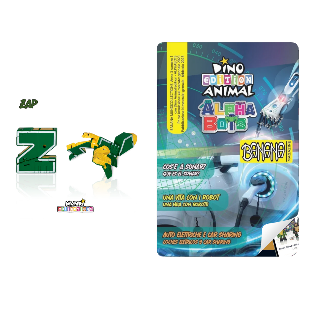 Discover the amazing Dino Animal Alphabots collection! This innovative line of magazine with collectable transforms the 26 letters of the alphabet into impressive animals and dinosaurs. Each letter becomes a unique figure, perfect for kids to learn and play at the same time. Ideal for ages 3 and up, these magazines and collectable combine fun, education, and creativity.