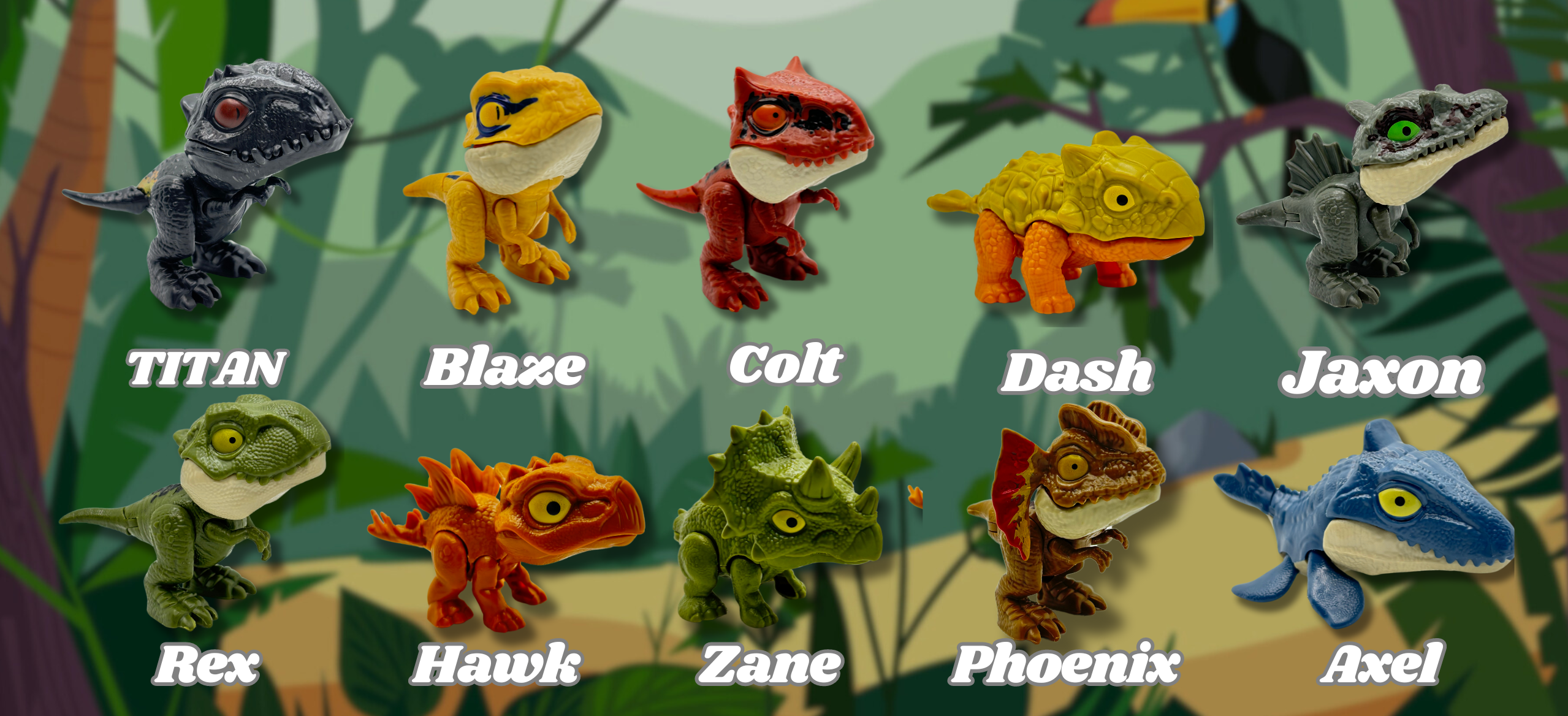 Collect all 10 models and enjoy a prehistoric adventure full of biting fun!